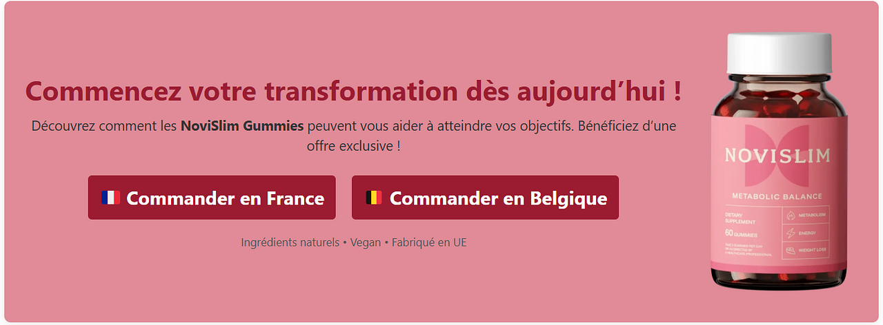 NoviSlim Gummies France offrent une option gourmande et naturelle pour accompagner une perte de poids progressive. Pas de promesses extravagantes, mais des retours positifs sur la réduction des envies, l’énergie et le confort digestif. Avec une formule propre et un format plaisant, c’est un allié intéressant pour qui cherche du plaisir au quotidien. Si vous combinez avec de bonnes habitudes, les résultats peuvent être encourageants. Testez avec la garantie, restez patiente et prenez soin de vous !